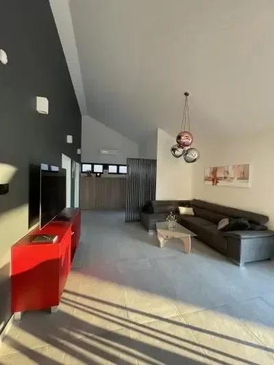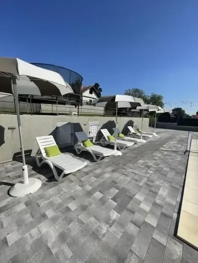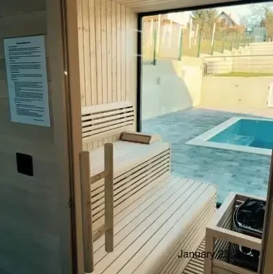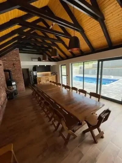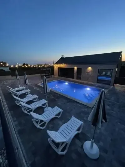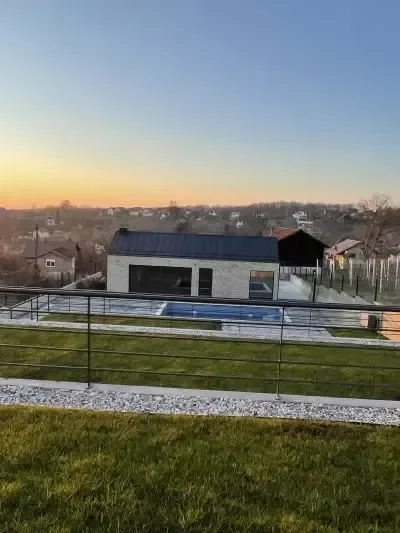 Holiday house Das Klet is located in Dugo Selo, on the slopes of Martin Breg, with a beautiful view of the outskirts of Zagreb. With the proximity of a big city, only 30 minutes from the center of Zagreb, you come to an oasis of peace and relaxation. Perfect for rest, enjoyment or good times with your loved ones. For intimate gatherings, great family parties or family gatherings, next to the house there is a cellar/tavern with an indoor oven and complete accessories, with a capacity for about 20 people. Both facilities, next to the pool, are fully equipped for any holiday or event you could wish for. Holiday house DasKlet offers two separate bedrooms, two bathrooms, a fully equipped kitchen, a dining room with a table for eight people with a beautiful view, a living room, a covered outdoor terrace with a lounge area and a fireplace, an outdoor pool, a sun deck, a children's playground with a trampoline, a modern sauna for 4 people with a view of the pool, a spacious yard for a perfect break from the hustle and bustle of the city and its own parking lot for 5 cars.