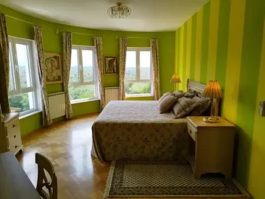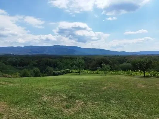 Holiday house "Sunce" is located in the central part of northwestern Croatia in the town of Igrišće. It represents a five-star (*****) categorization of the object. The size of the house is 825.00 m2, and the area of the plot is 16,000.00 m2. There is vineyard on a property with varieties of Graševina, Rhine Riesling, Muscat yellow and Brajda with various varieties of black and white grapes. The surroundings are dominated by forest, chirping birds and untouched nature and below the vineyard, in the forest is a stream. The view of the forest landscape stretches towards the Medvednica mountain and on the left you can see the Church of Saint Three Kings from Kraljevi Vrh. The spaciousness of the plot and openness from east to west during sunny days provide a warm all-day atmosphere during summer and winter. Walking tours or cycling in the area are just one of the advantages of the location.