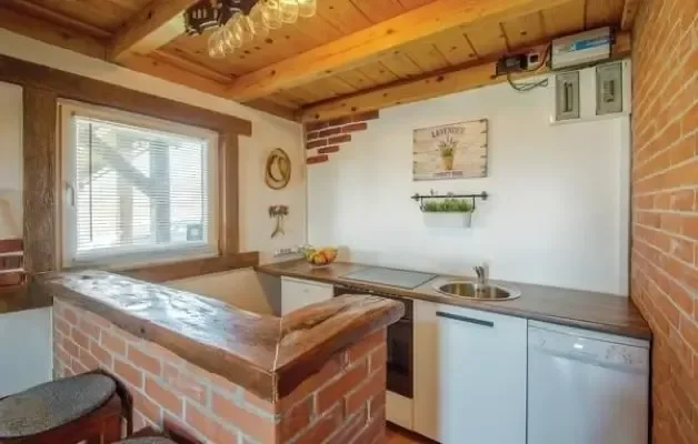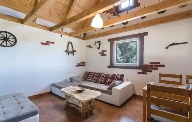The house is completely independent, electricity is provided entirely from the solar system. Water is collected from rain water, filtered and disinfected, and serves as technical water for washing hands, dishes and use of the toilet. The house is heated with fireplace.